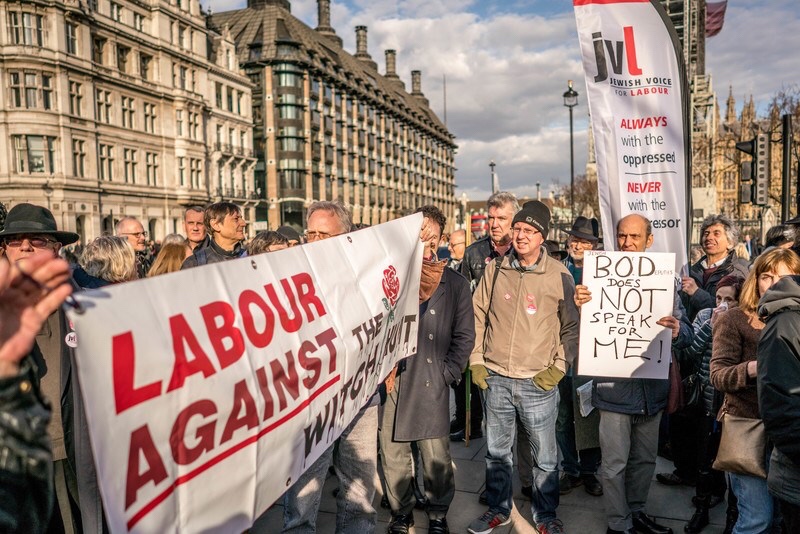 Jewish Voice for Labour supporters demonstrating against false claims of anti-Semitism, in London on 26 March 2018 [Twitter]