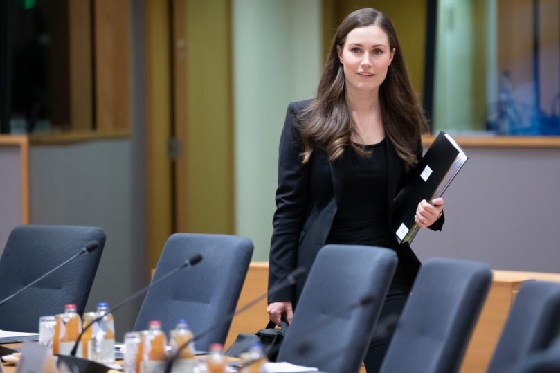 The new Finnish prime minister, Sanna Marin, at the EU leaders’ summit in Brussels. Photograph: Thierry Roge/Belga via ZUMA Press/Rex