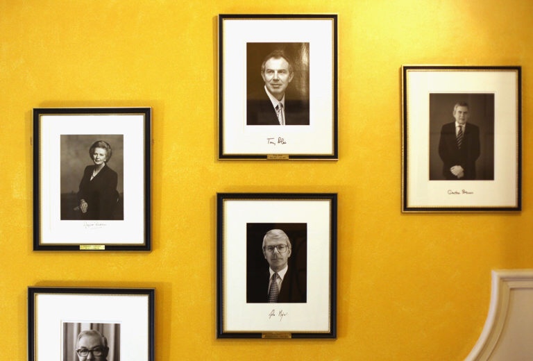 Photo portraits of former British prime ministers hanging at No. 10 Downing Street, London, 2011